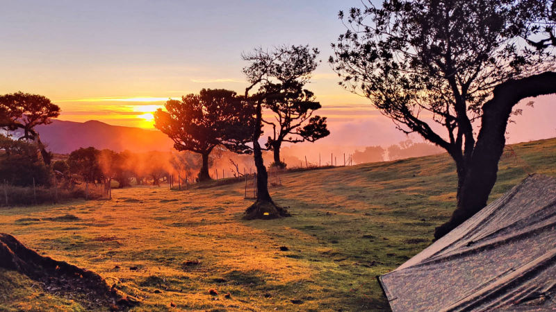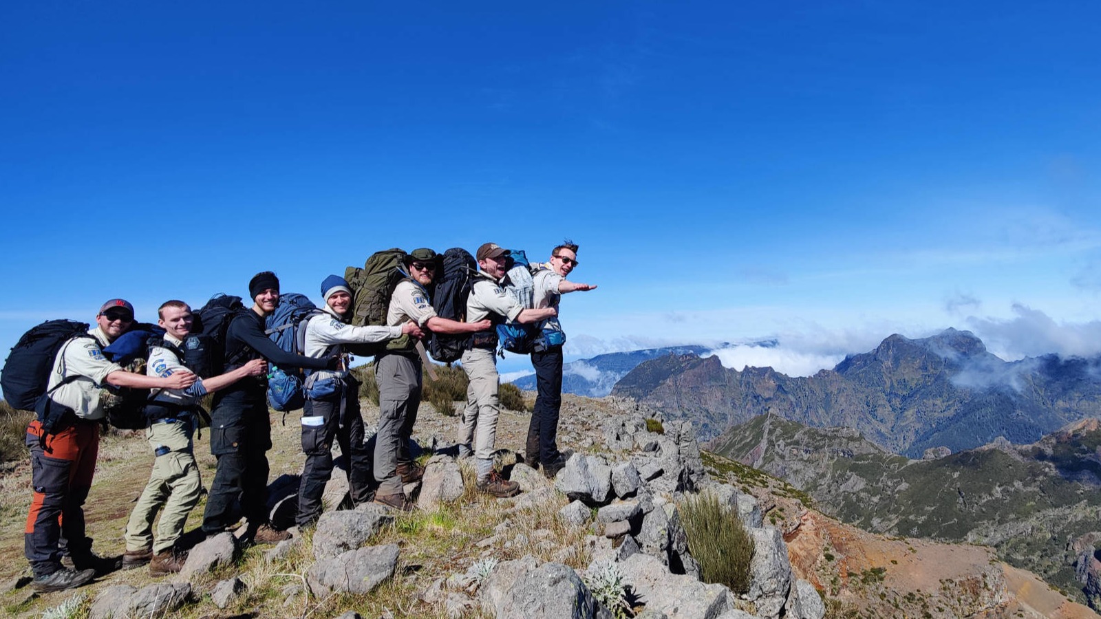 Mehr als 70 Rangern waren wir im April 2022 auf Großfahrt auf Madeira. Bereits der Flug nach Funchal war ein Erlebnis - der halbe Flieger voll mit bestens gelaunten Rangern. Am Ziel angekommen ging es mit dem Bus zu unserem Startpunkt hoch in den Bergen. Zwischen grasenden Kühen verbrachten wir unsere erste Nacht im Biwak.