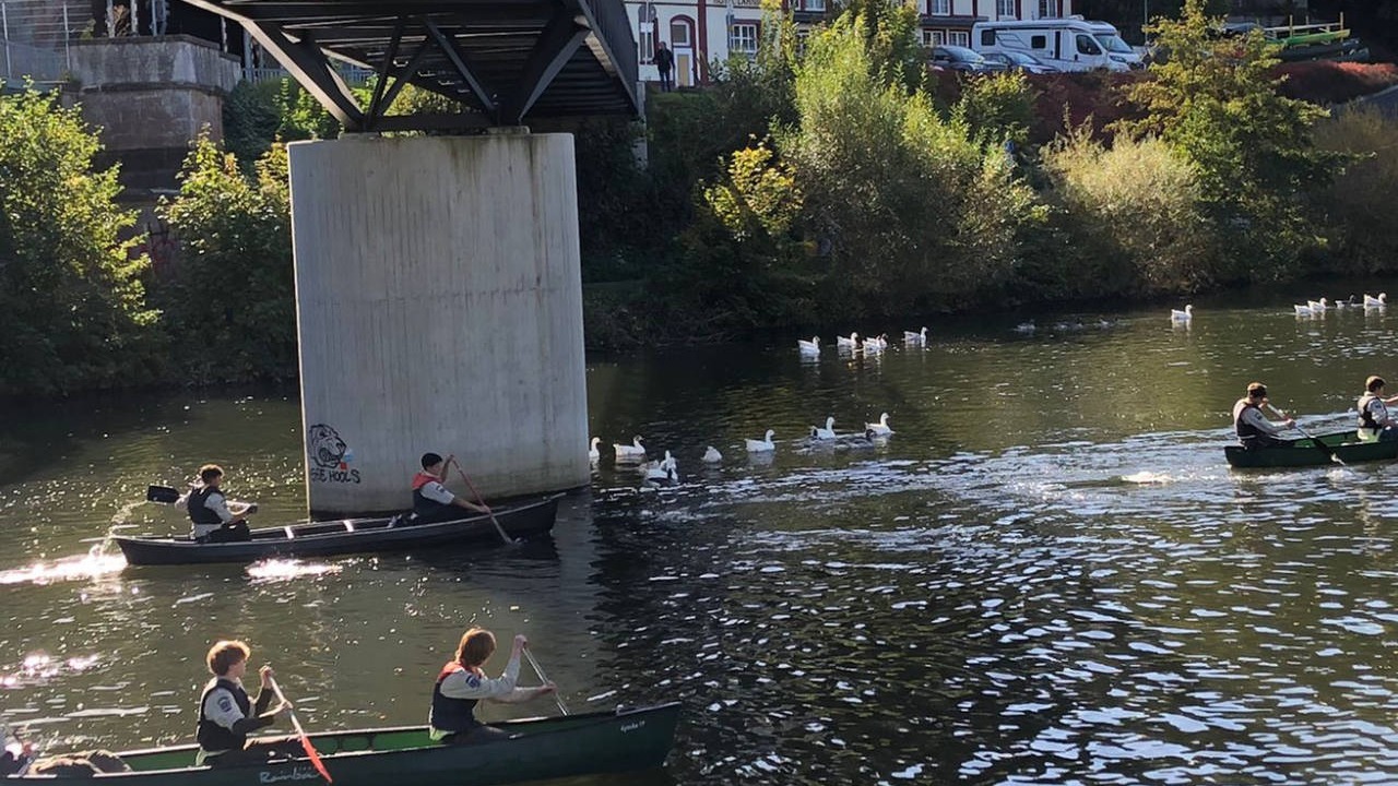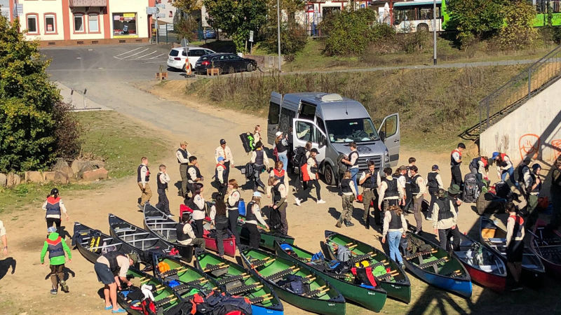 Herbst und Kanutour? Kann das überhaupt Spaß machen? Jede Menge sogar! Drei Tage war unsere Pfadfinderstufe auf der Lahn unterwegs. Startpunkt war Weilburg an der Lahn, wo die 16 Kanus zu Wasser gelassen wurden. Hier wartete direkt auch ein Highlight der Tour: Ein Schiffstunnel unter der Stadt hindurch und anschließend direkt zwei Schleusen. Weitere acht Kilometer ging es danach den Fluss hinunter bis das Zwischenziel, ein Campingplatz in Gräveneck direkt am Flussufer, erreicht war. Hier gab es eine kräftige Maultaschensuppe und anschließend bauten die Rangers vier Zeltdächer auf, unter denen dann die Nacht verbracht wurde. Trotz Temperaturen um den Gefrierpunkt schliefen alle gut und am nächsten Morgen ging es frisch ausgeruht wieder auf die Lahn hinaus. Vorbei an Äckern, Wäldern und Felsen ging es mit dem Kanu mal bei schneller, mal bei träger Strömung den Fluss hinunter. Einige ganz Wilde machten sich einen Spaß daraus, sich gegenseitig mit ihren Kanus zu versenken. So landeten einige Jugendliche im kalten Wasser, was aber angesichts des guten Wetters und des flachen Flusses ein großer Spaß für alle Beteiligten war. Am Abend wurden dann kurz vor dem Ziel der Tour bei Runkel wieder die Zelte aufgeschlagen. Nach einer gemütlichen Runde am Lagerfeuer endete dann auch dieser aufregende Tag.